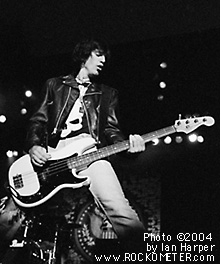 This white late 80's Fender Precision was made in the USA. It originally came with a white pick guard, but CJ had it switched to look like Dee Dee's basses from the late 70's